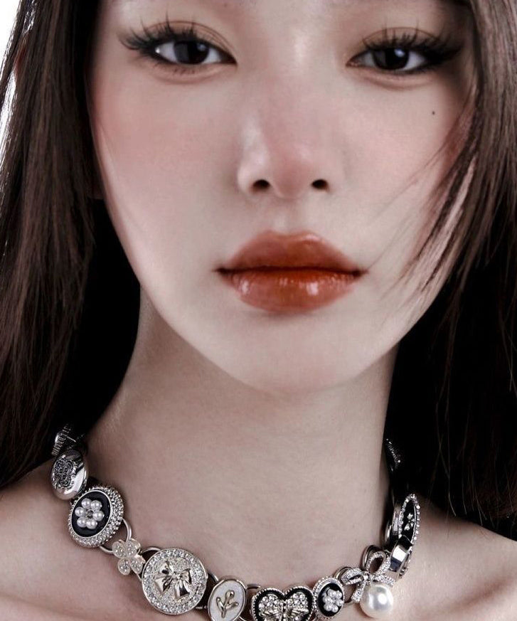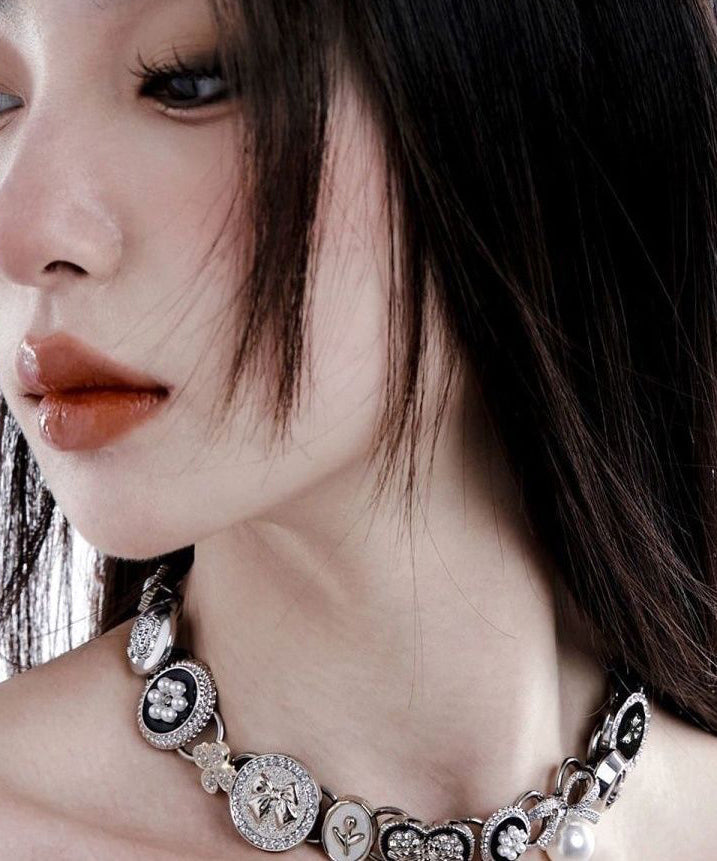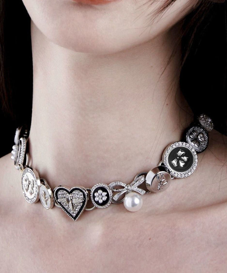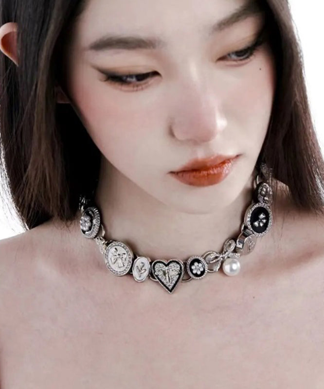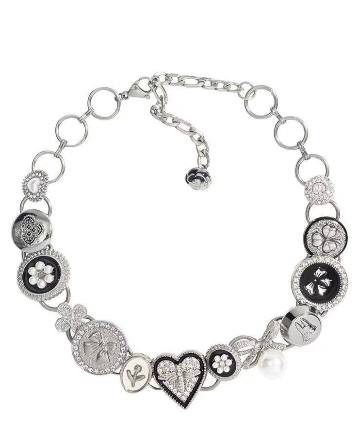 Modern Colorblock Metal Zircon Love Button Collar Necklace
