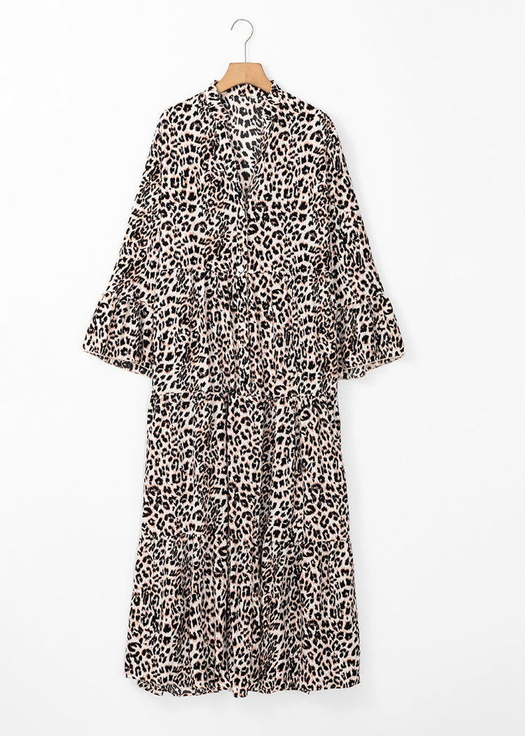 Plus Size Leopard V Neck Patchwork Maxi Dress Fall