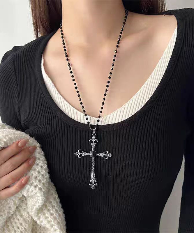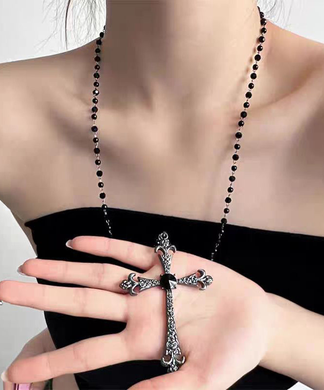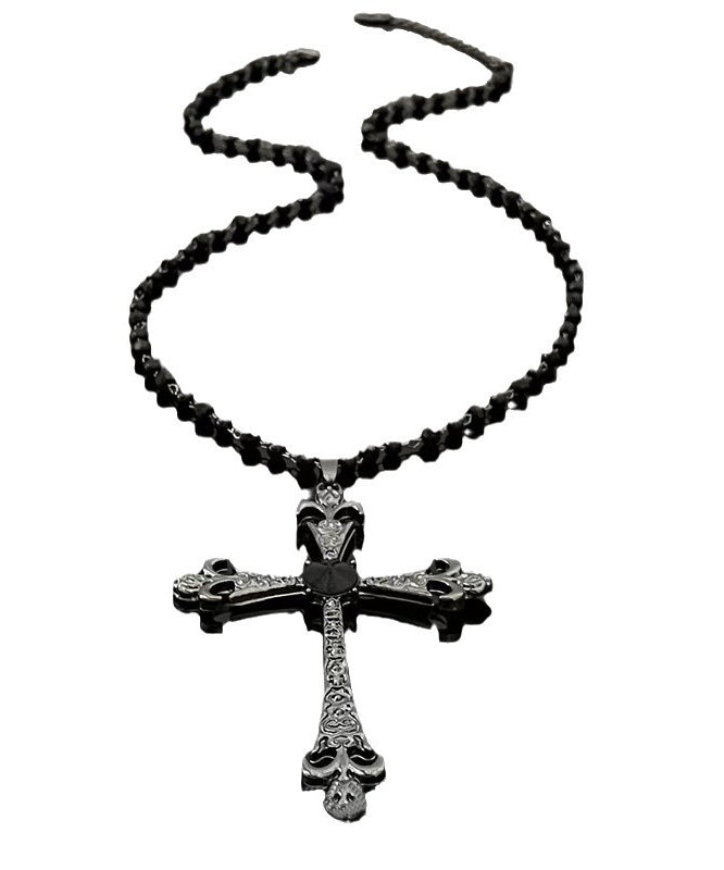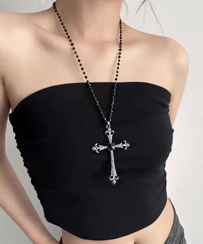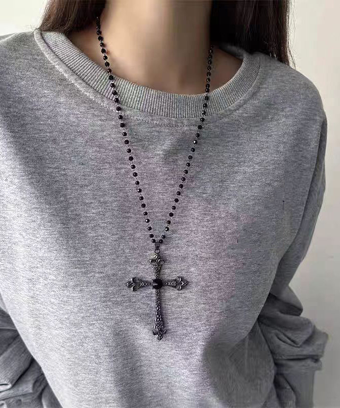 Retro Black Alloy Zircon Beads Cross Gratuated Bead Necklace