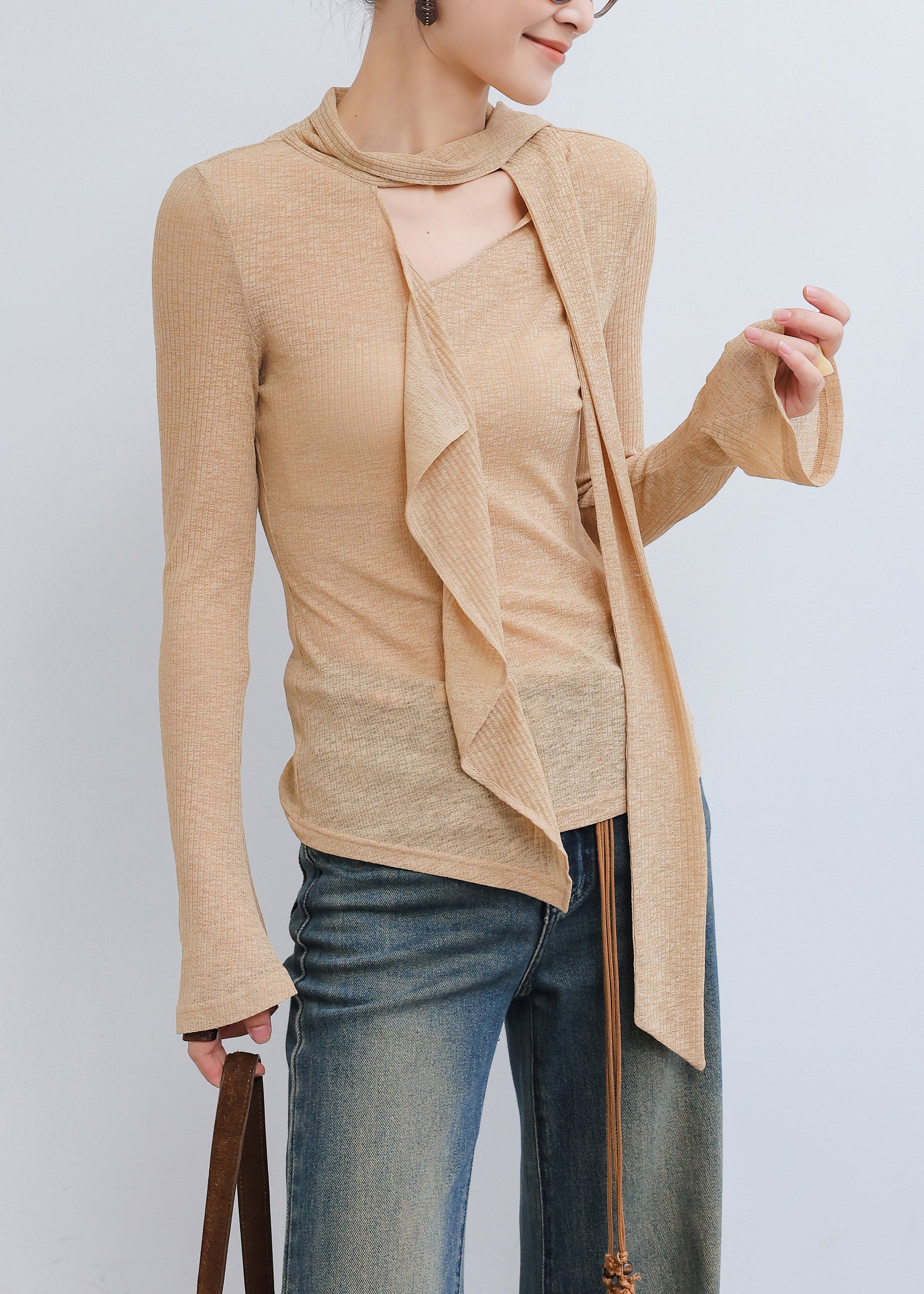 Chic Khaki Asymmetrical Cotton Blouse Top Spring