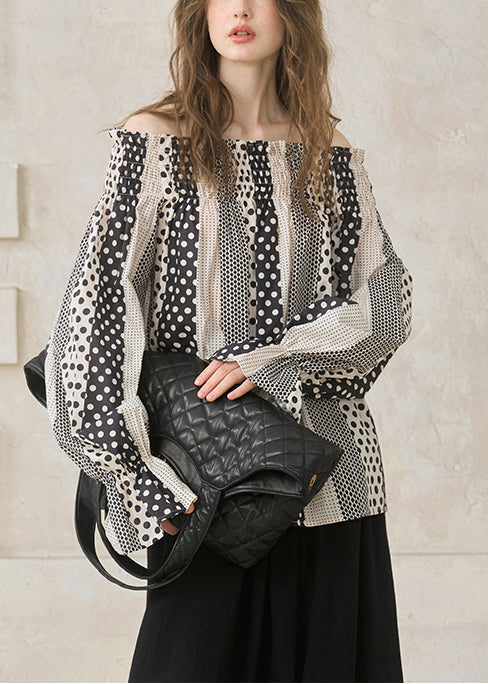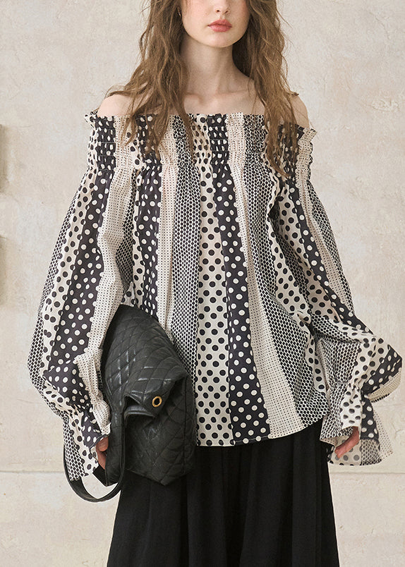 French Khaki Cold Shoulder Cotton Shirt Tops Spring