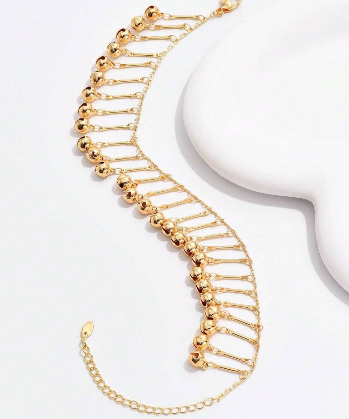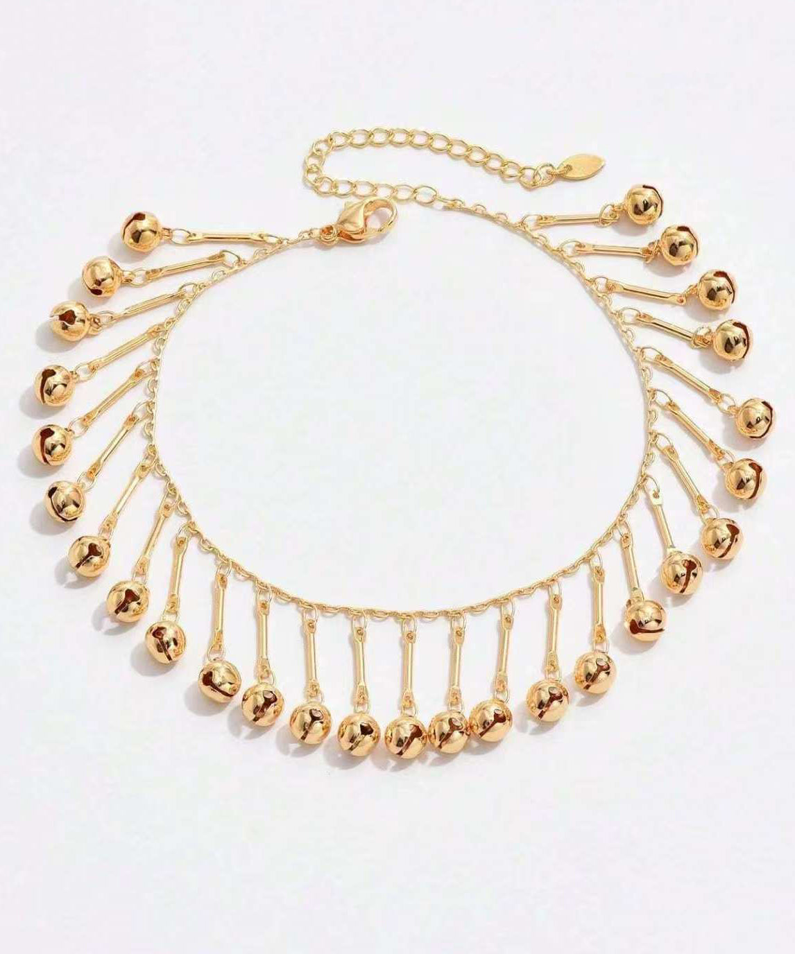 Fashion Gold Alloy Bell Hollow Out Tassel Anklets