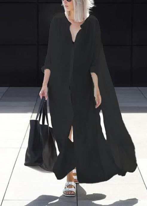 Plus Size White Oversized Side Open Cotton UPF 50+ Long Shirts Summer