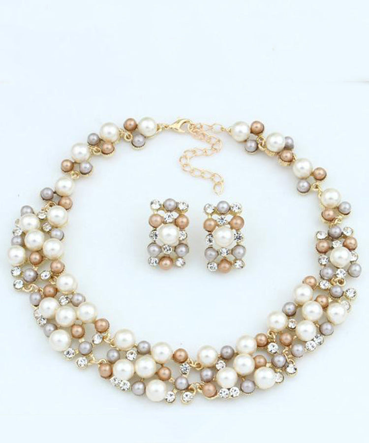 Stylish White Zircon Pearl Necklaces Set Earrings Jewelry Women