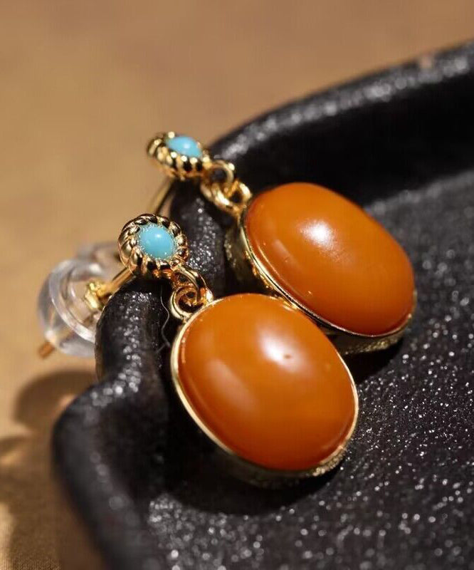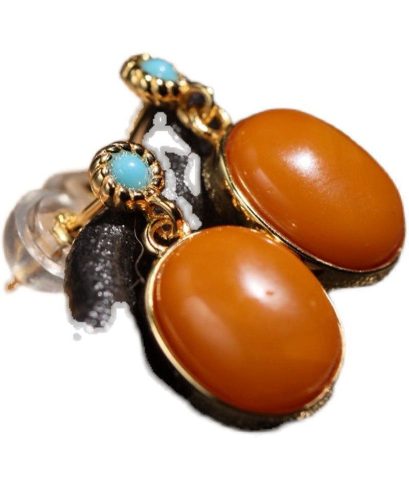 Vintage Colorblock Sterling Silver Overgild Turquoise Beeswax Drop Earrings