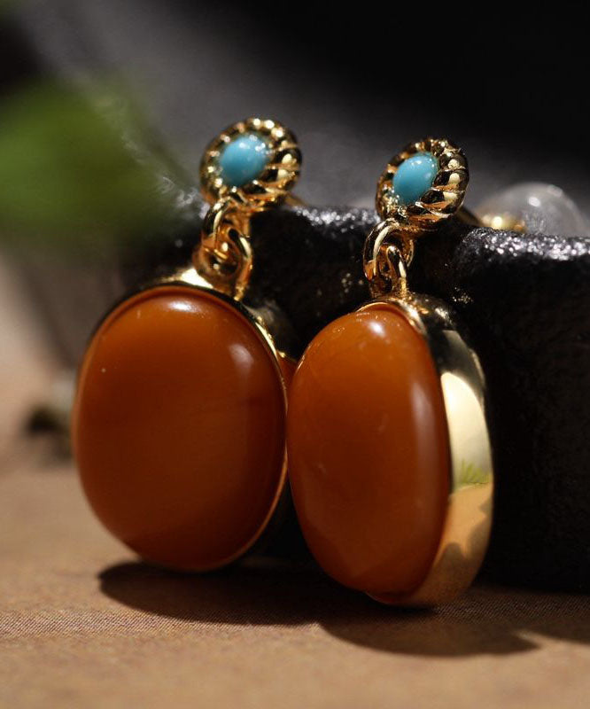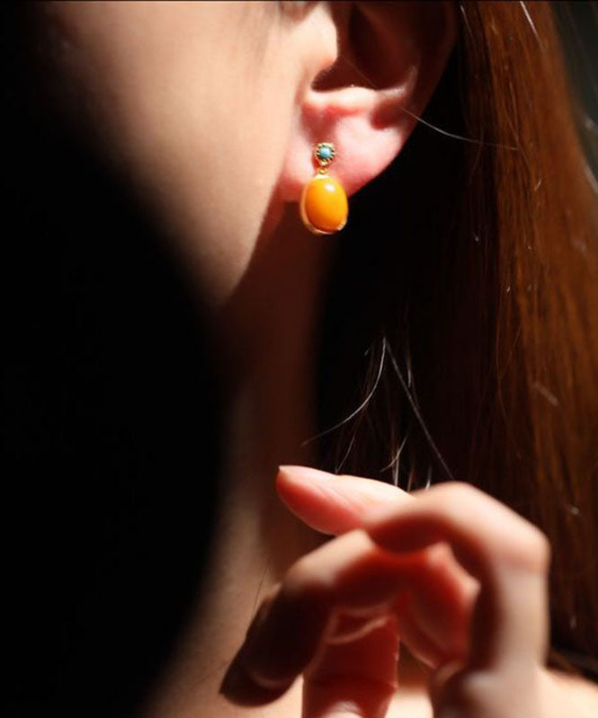 Stylish Yellow Sterling Silver Overgild Enamel Beeswax Drop Earrings