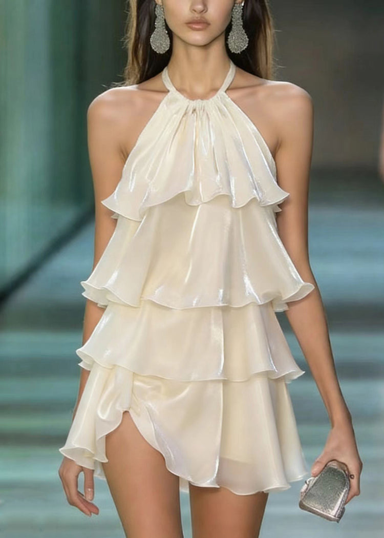 Cute Apricot Layered Ruffled Patchwork Chiffon Mini Dresses Summer