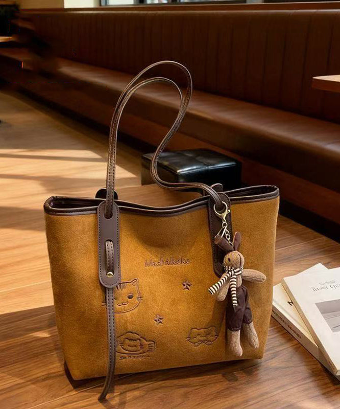 Women Brown Cute Cat Embroidered Faux Leather Shoulder Bags