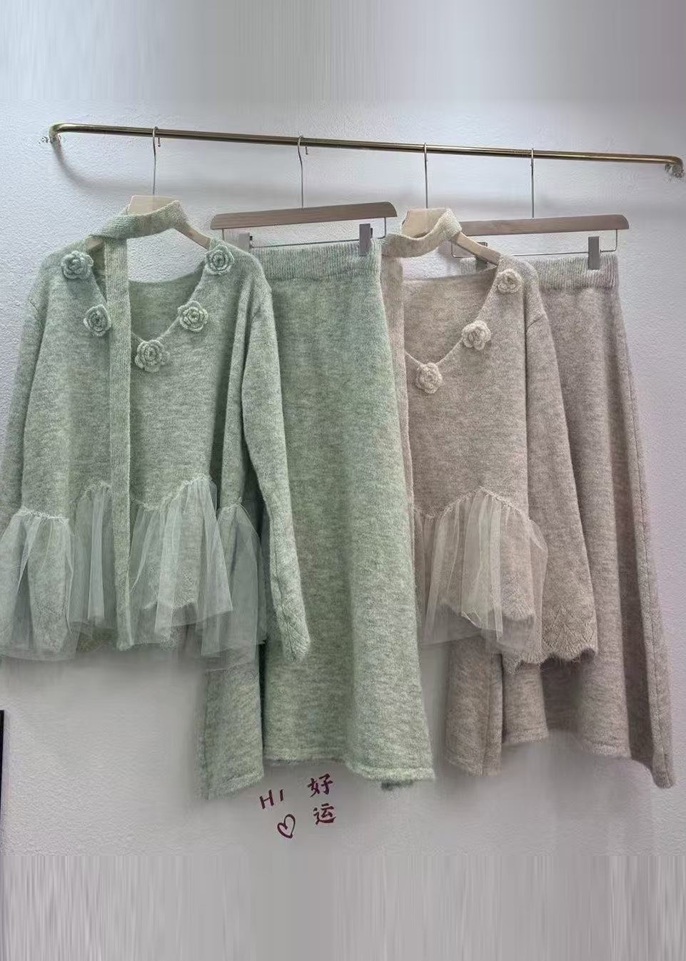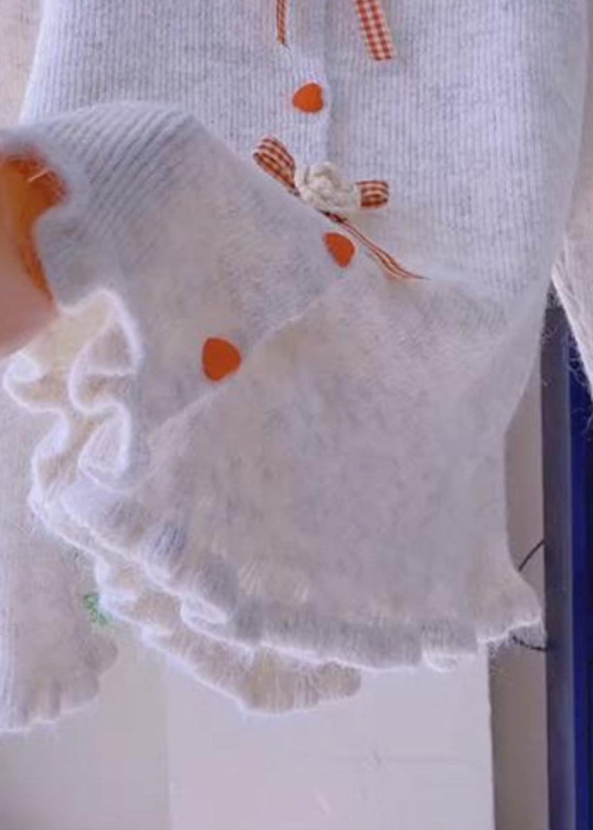 Beautiful Pink Flower Patchwork Tulle Knit Cardigans Winter