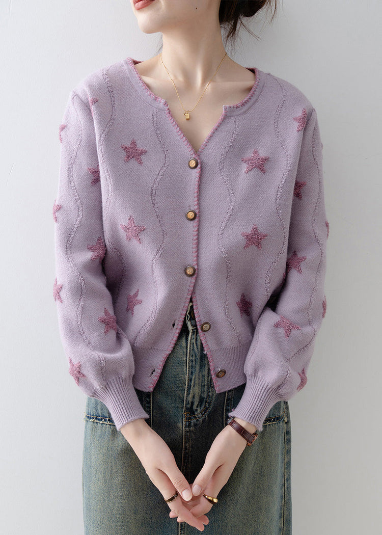 Italian Purple V Neck Button Knit Loose Coat Spring