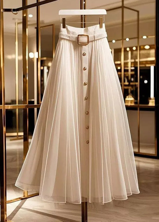 Original Design Apricot Wrinkled High Waist Tulle Skirts Summer