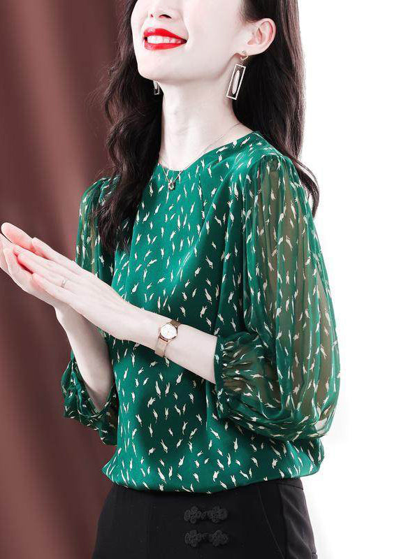 Stylish Green O-Neck Print Chiffon Shirt Bracelet Sleeve