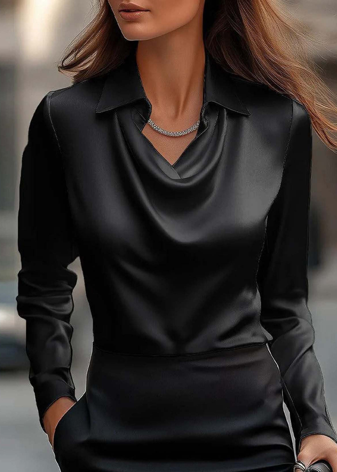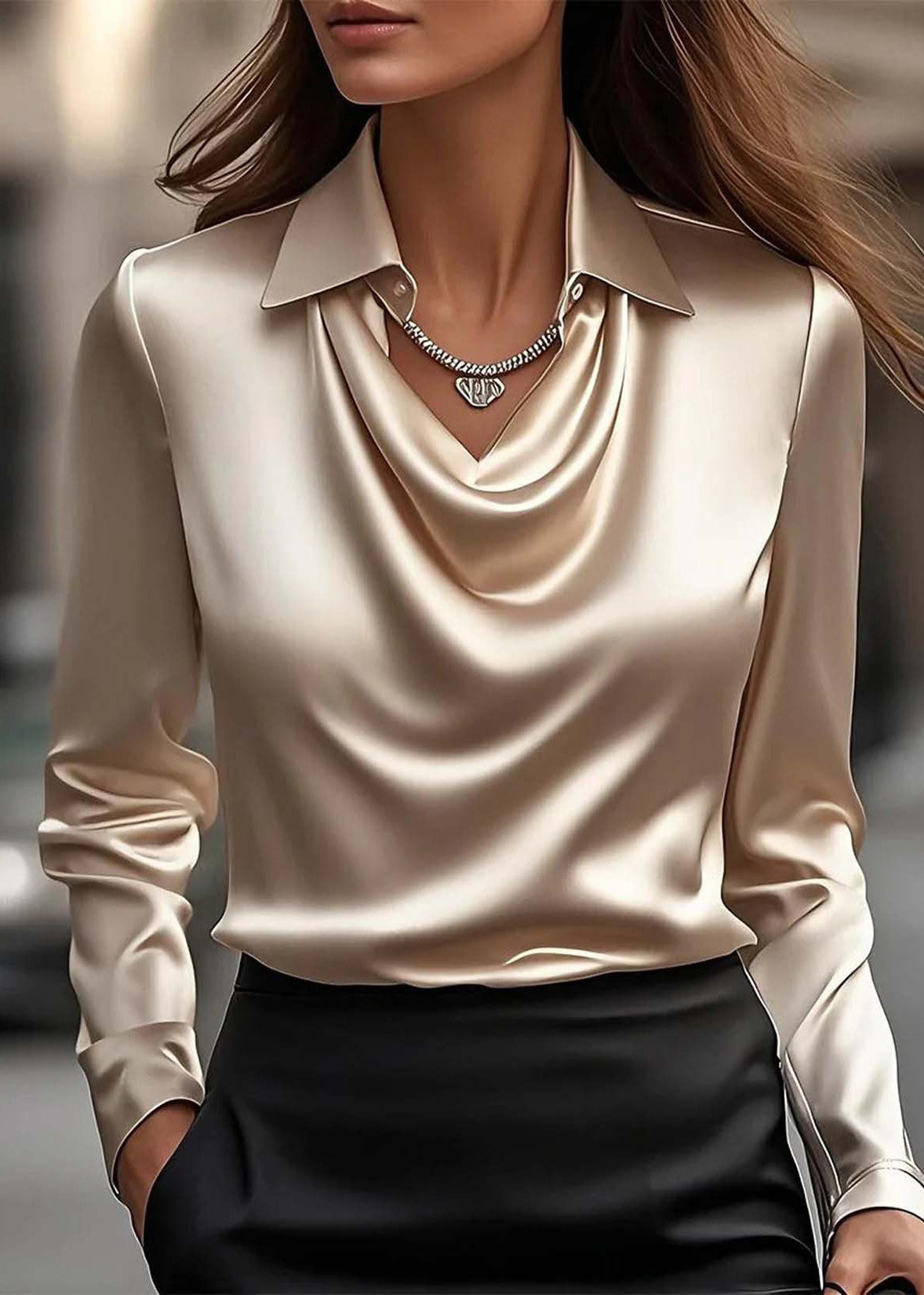 Simple Style Grey Peter Pan Collar Silk Shirts Top Spring