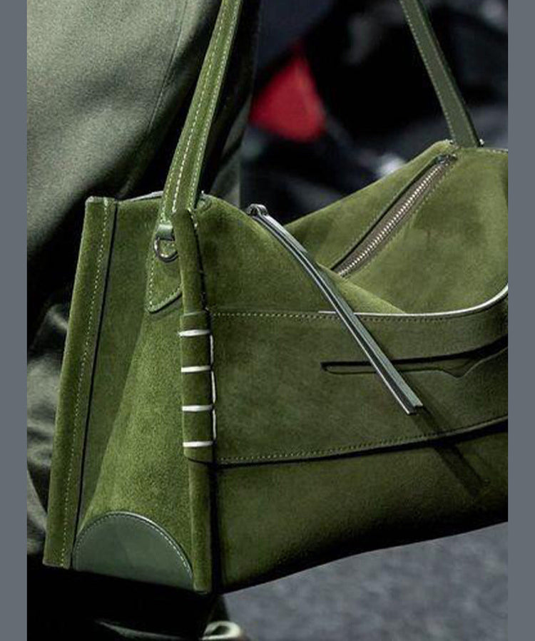 Chic Tea Green Solid Durable Fine Suede Shoulder Bags