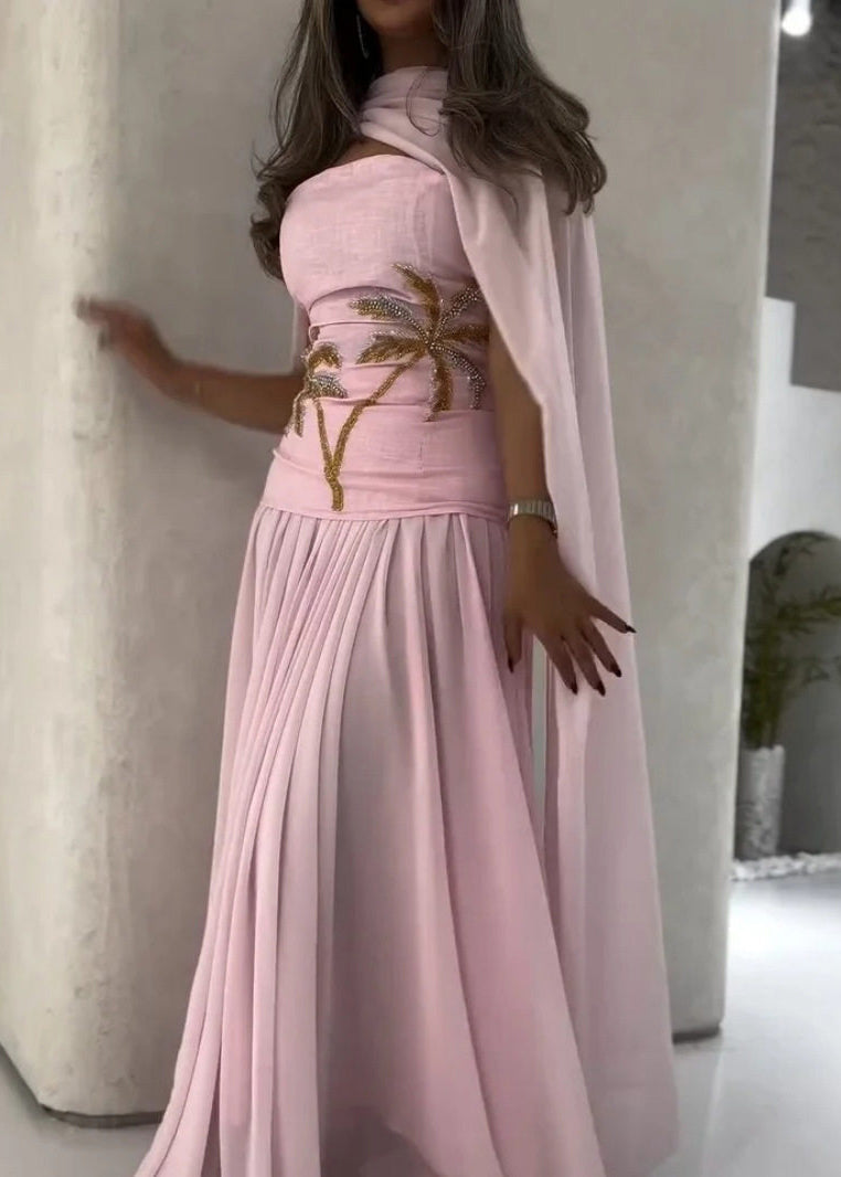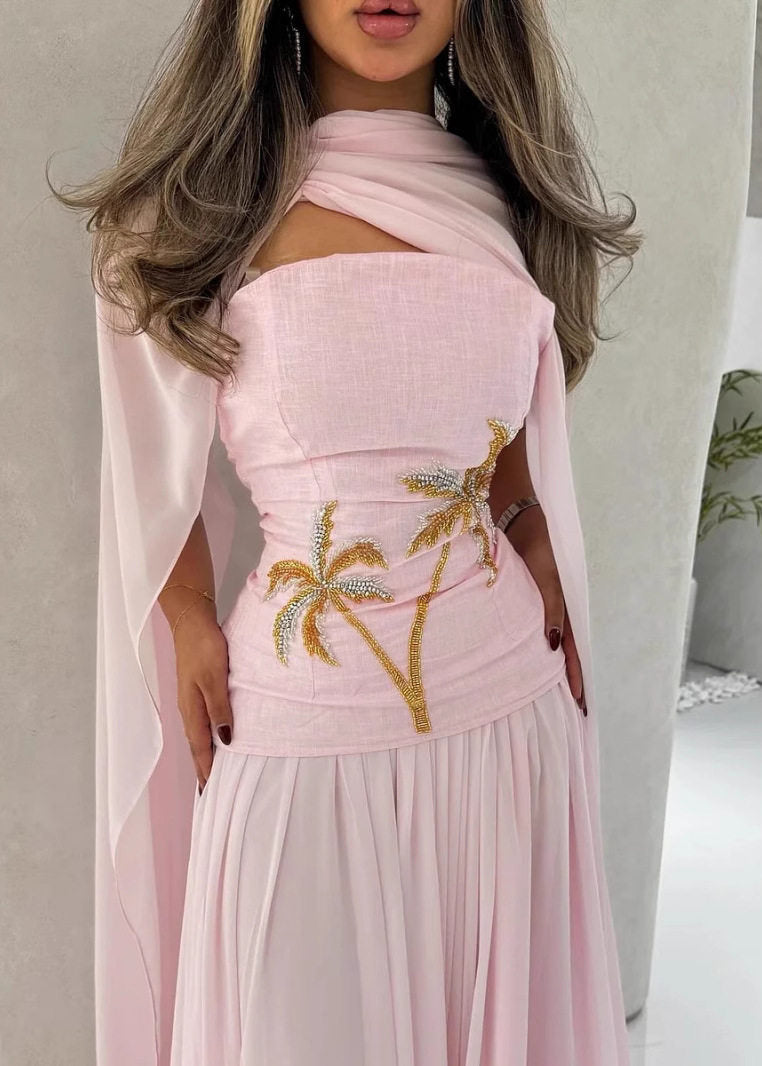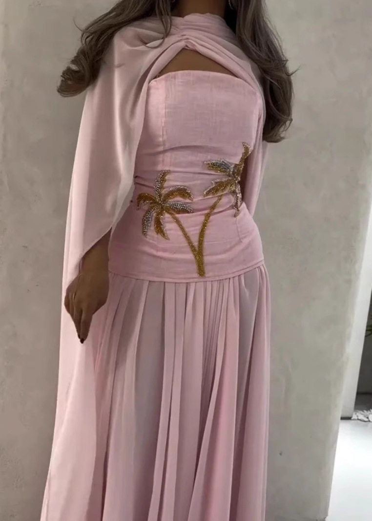 Cute Pink Nail Bead Shawl Long Dress Batwin Sleeve