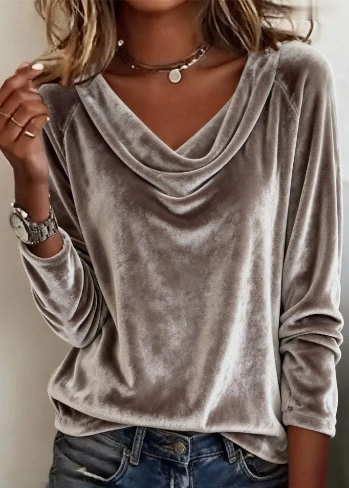 Natural Grey Pockets Solid Pullover O-Neck Spring
