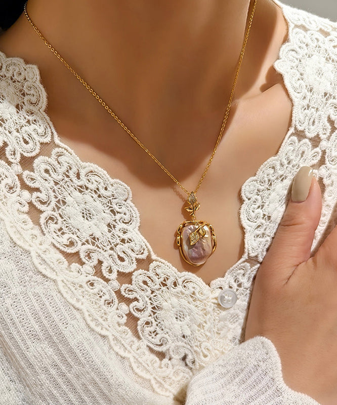 Fashion White Copper Overgild Pearl Branch Pendant Necklace