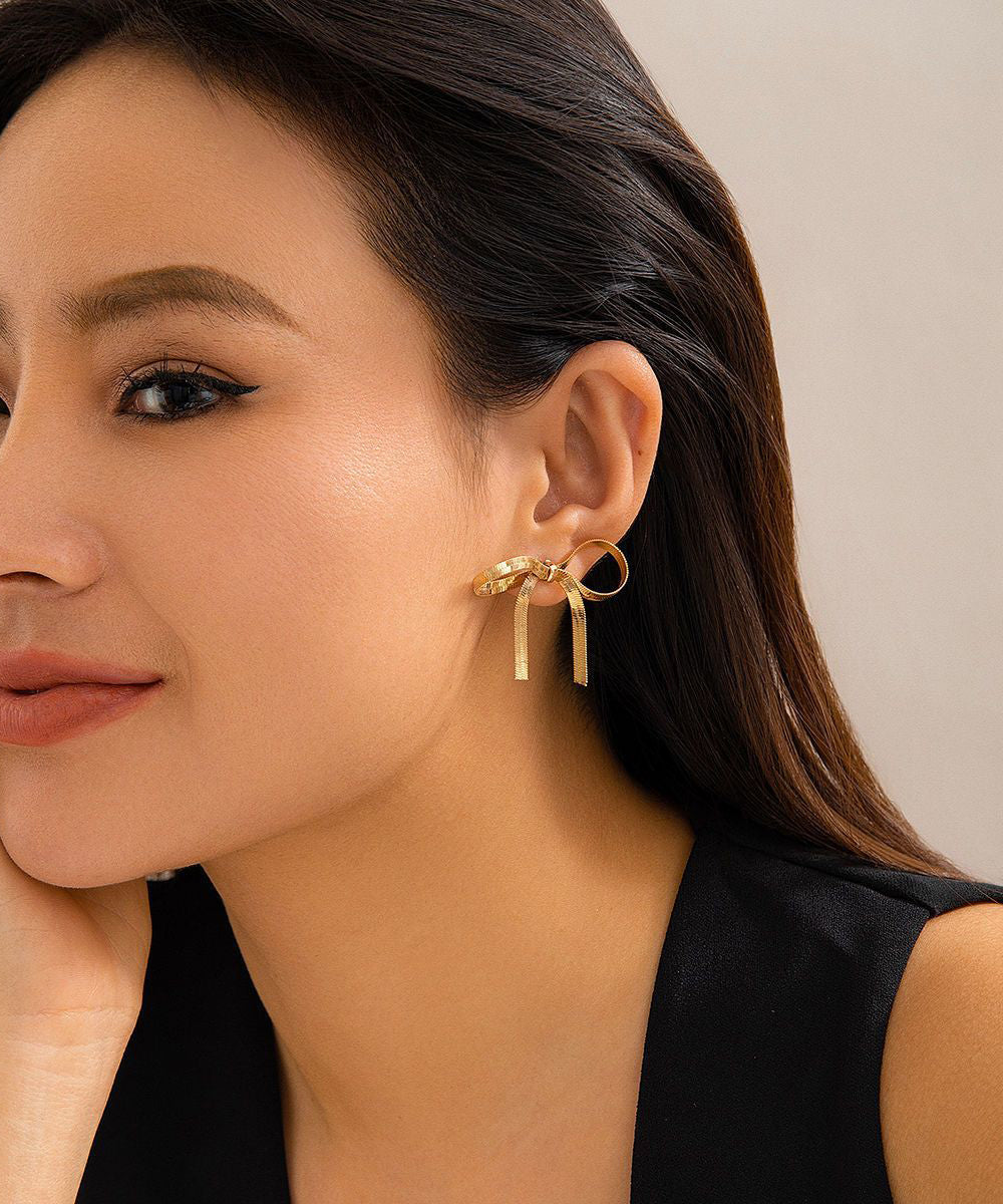 Modern Gold Metal Overgild Bow Tassel Hoop Earrings
