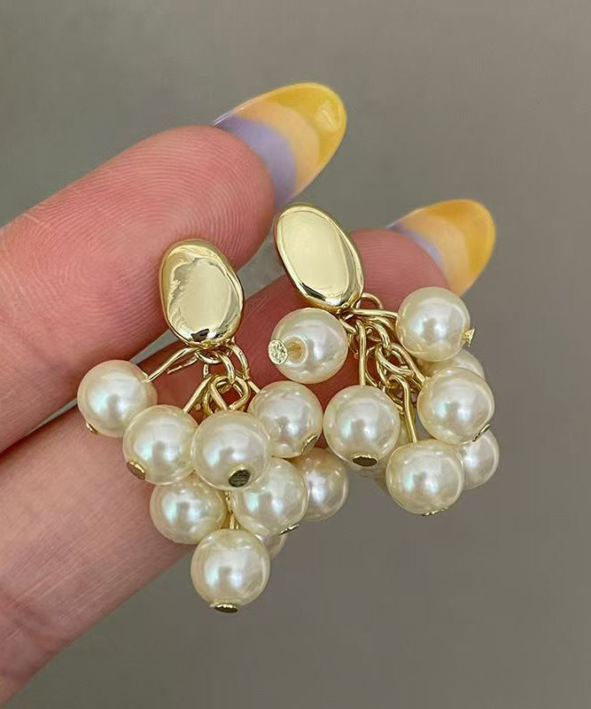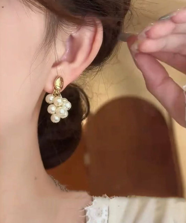 Original Design Gold Copper Overigl Pearl Grape Tassel Drop Earrings