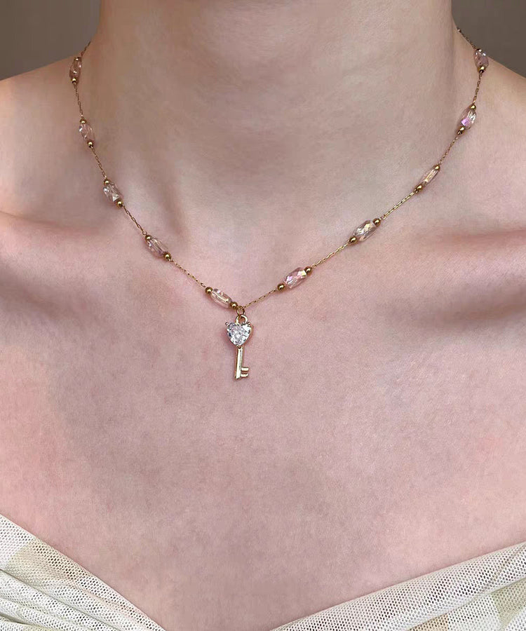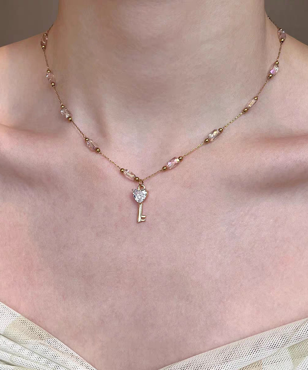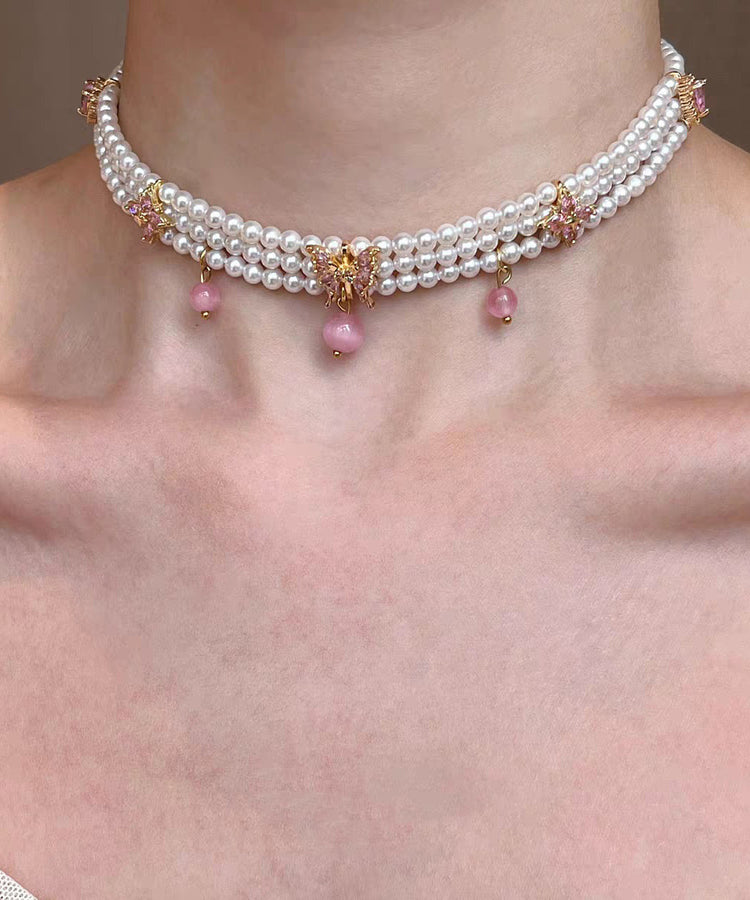 Cute Pink Alloy Pearl Cat's Eye Strawberry Beading Pendant Necklace Three-Piece Set