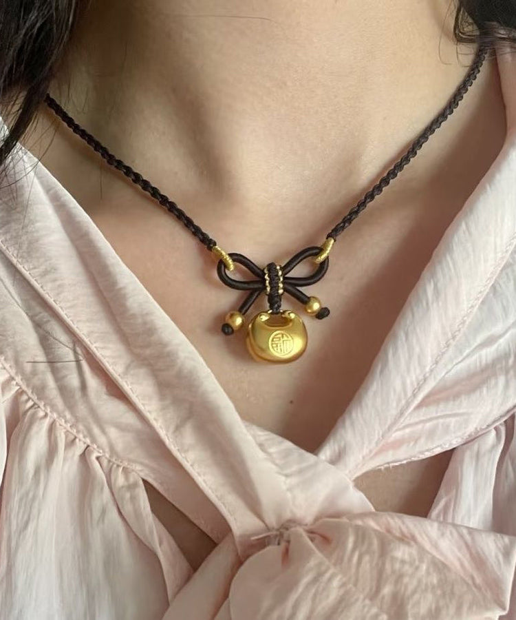 Handmade Black Sterling Silver Overgild Lucky Bag Pendant Necklace