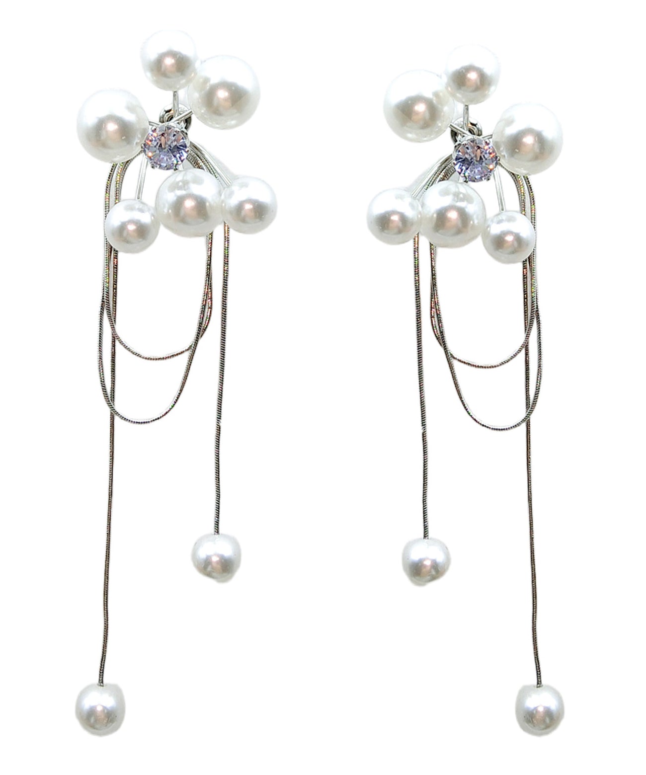 Loose White Sterling Silver Alloy Zircon Pearl Drop Earrings