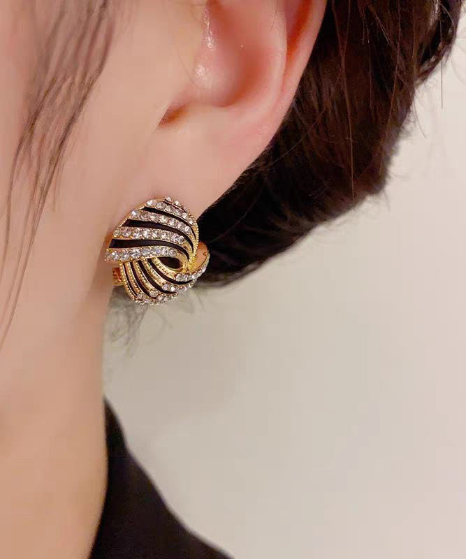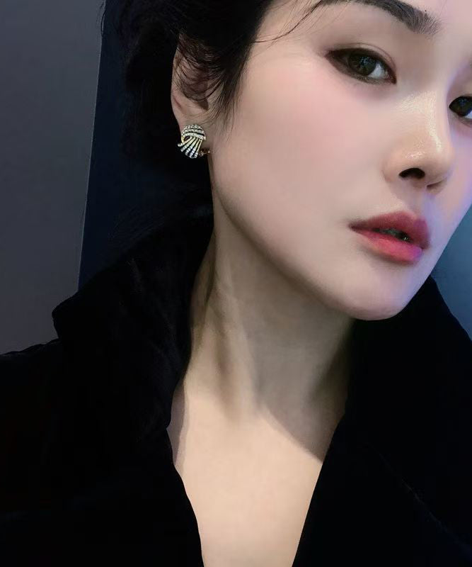 Made of fine 14K Gold Zircon Striped Hollow Out.