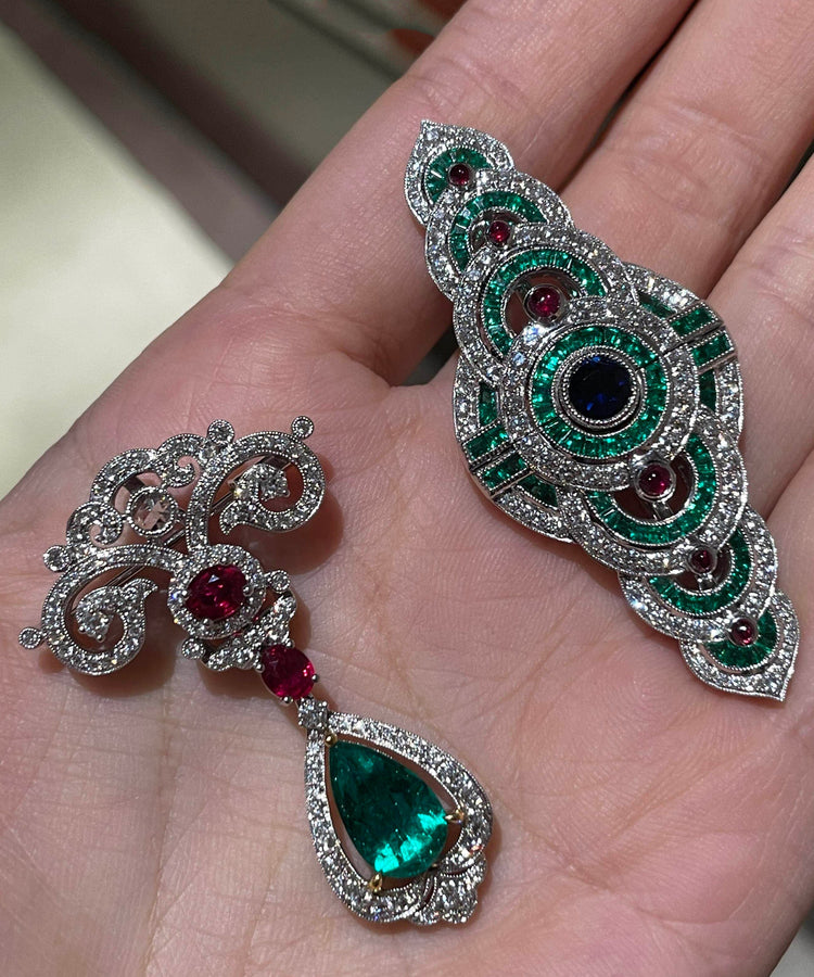 Unique Picture 1 Green Alloy Zircon Water Droplet Brooches