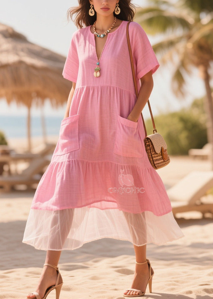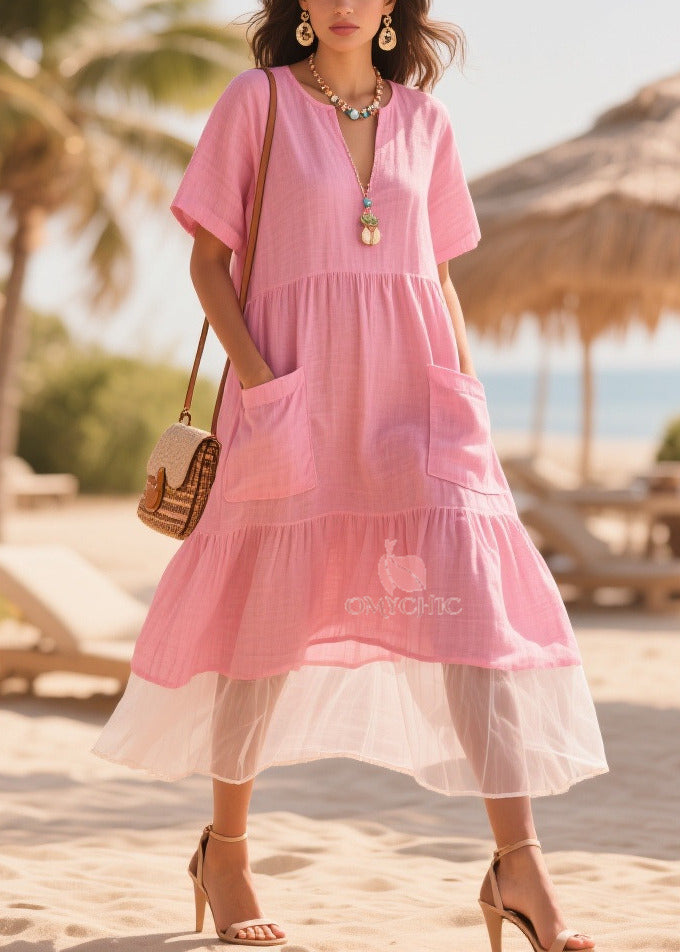 Classy Pink Oversized Patchwork Tulle Cotton Maxi Dresses Summer
