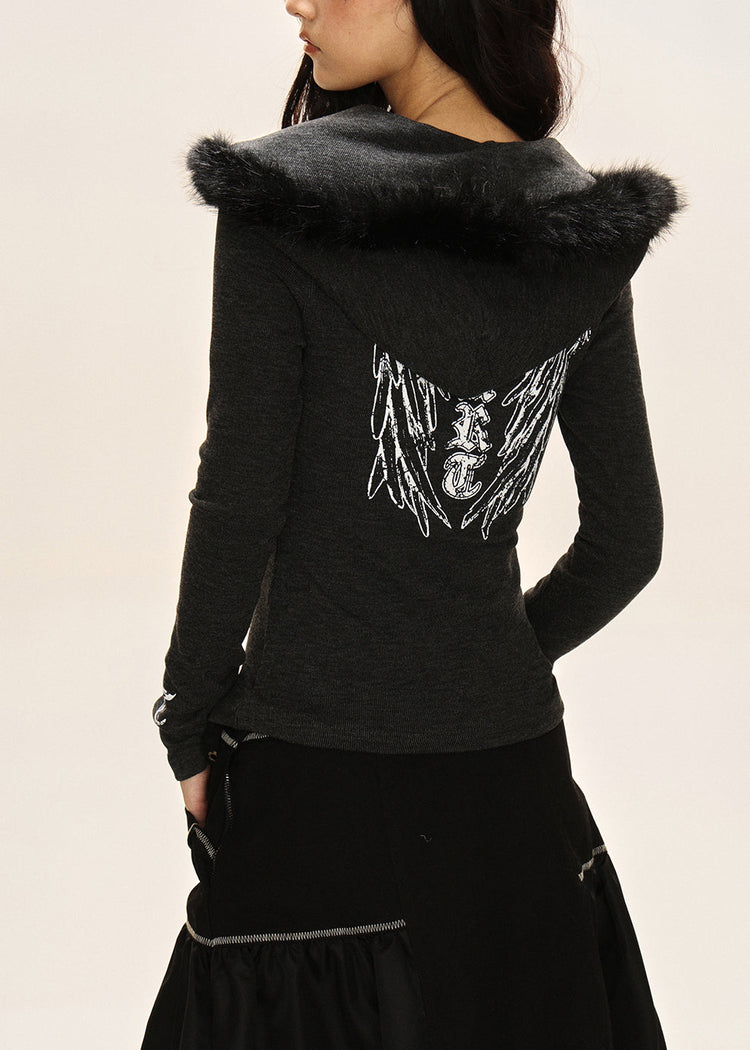 Slim Fit Light Grey Print Hooded Shirts Long Sleeve
