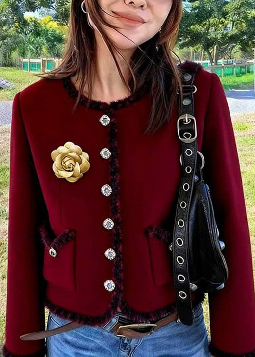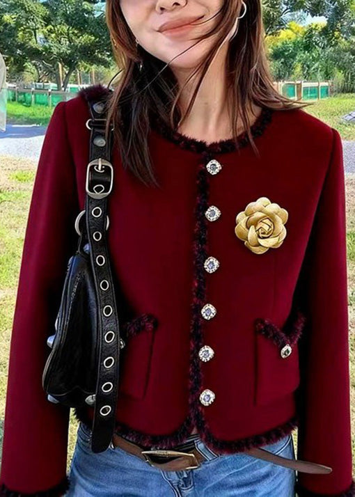 Italian Mulberry O Neck Pockets Floral Cotton Short Coat Spring