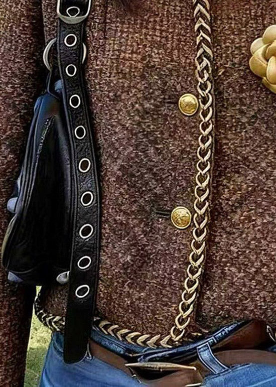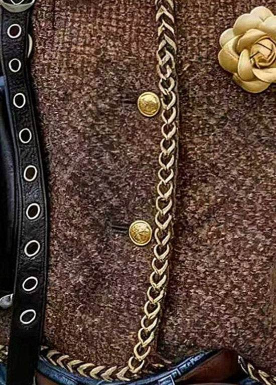 Women Brown O Neck Button Floral Cotton Short Coat Spring
