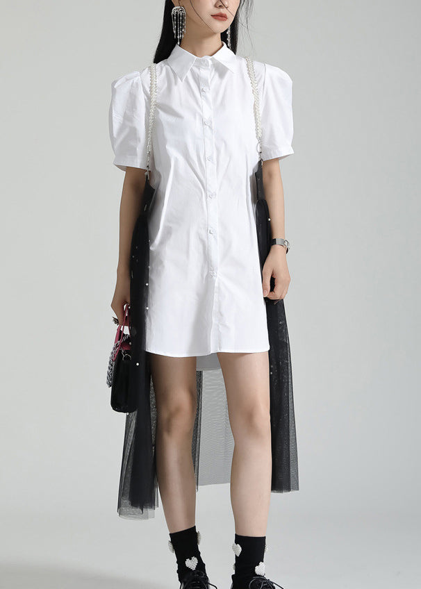 French White Peter Pan Collar Shirt Dresses And Tulle Skirt Two Pieces Set Summer
