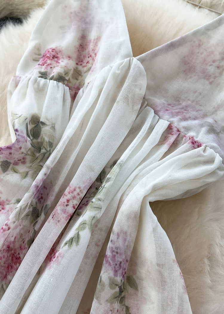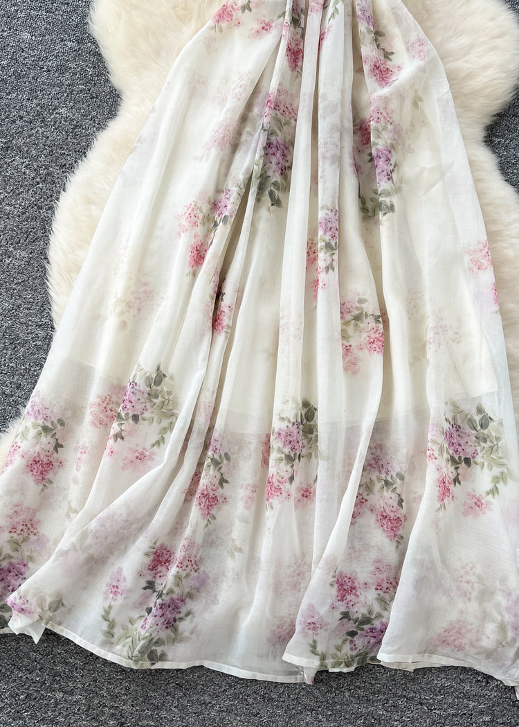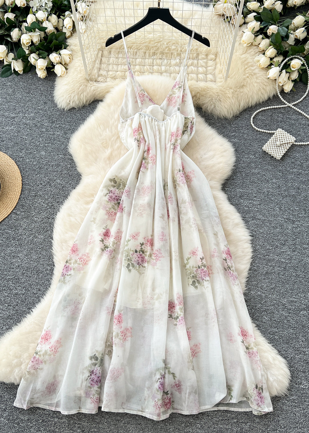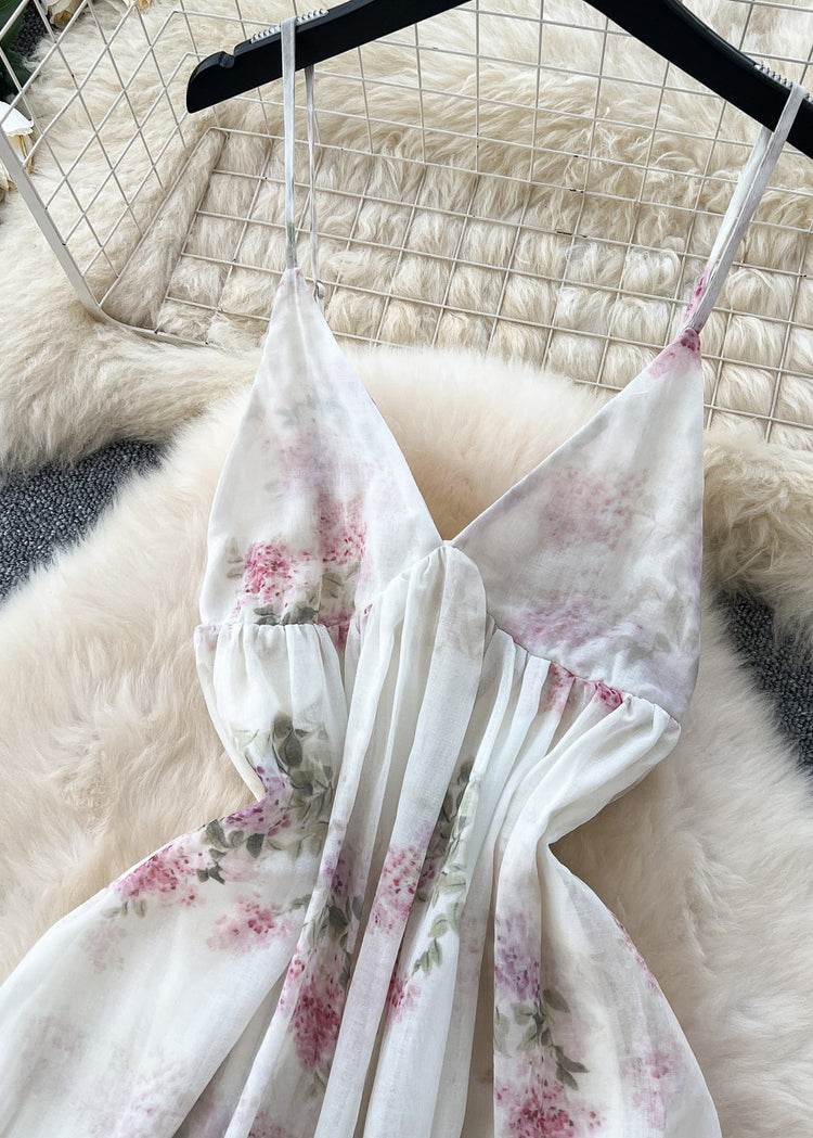 French White Print Exra Large Hem Chiffon Cami Dresses Summer