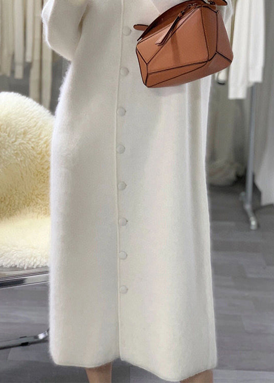 French White Puff Sleeve Button Patchwork Woolen Coat Winter