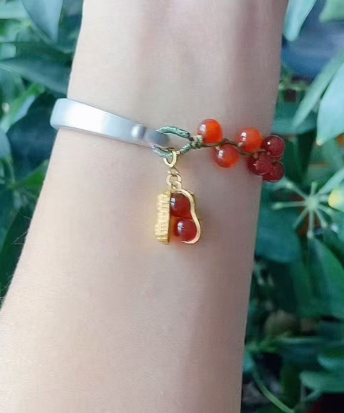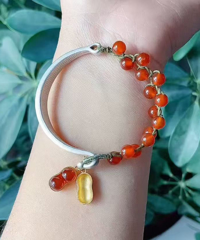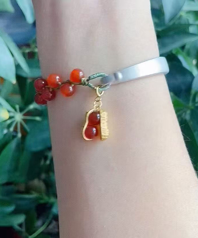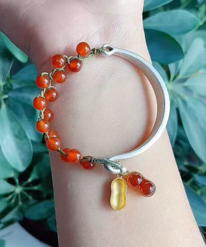 Chinese Style Red Sterling Silver Agate Peanut Charm Bracelet