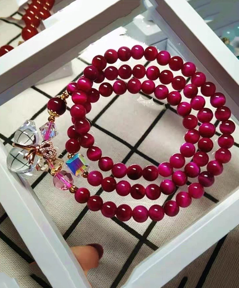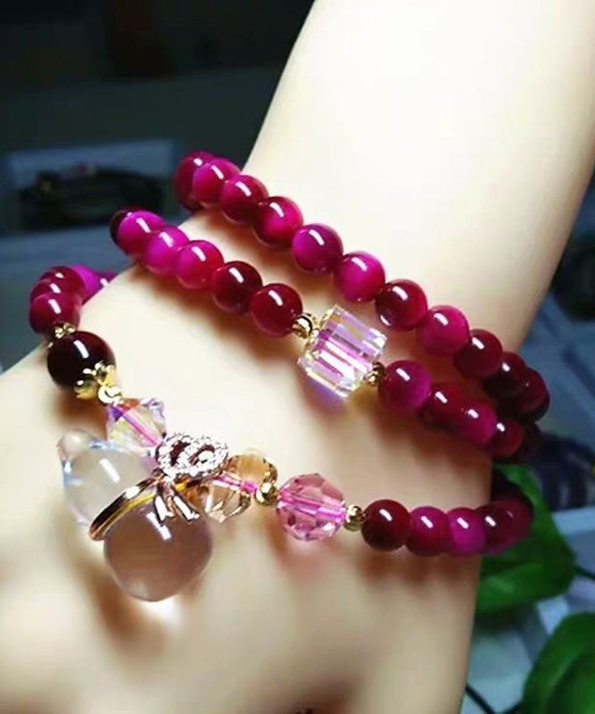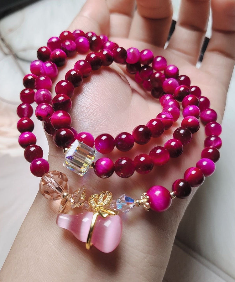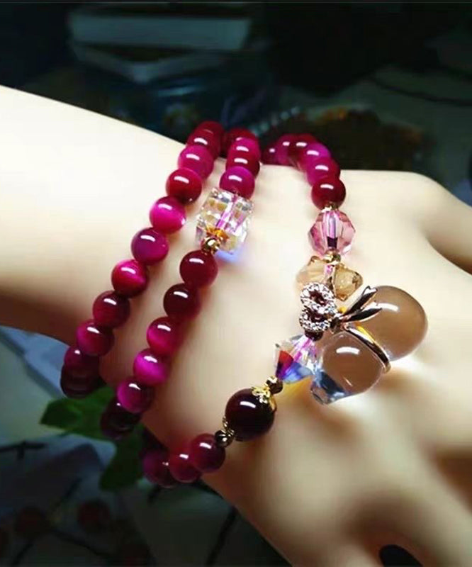 Original White Hand Woven Crystal Cat Eye Stone Gourd Charm Bracelet