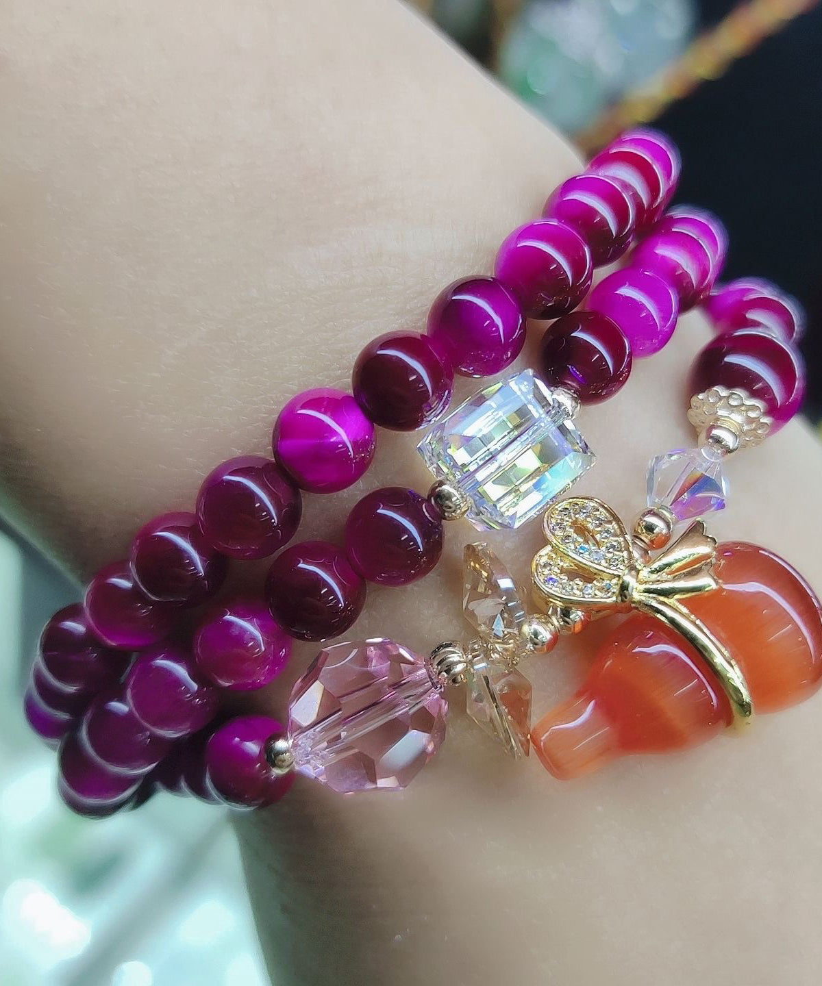 Made of fine Hand Woven Crystal Cat Eye Stone Gourd.