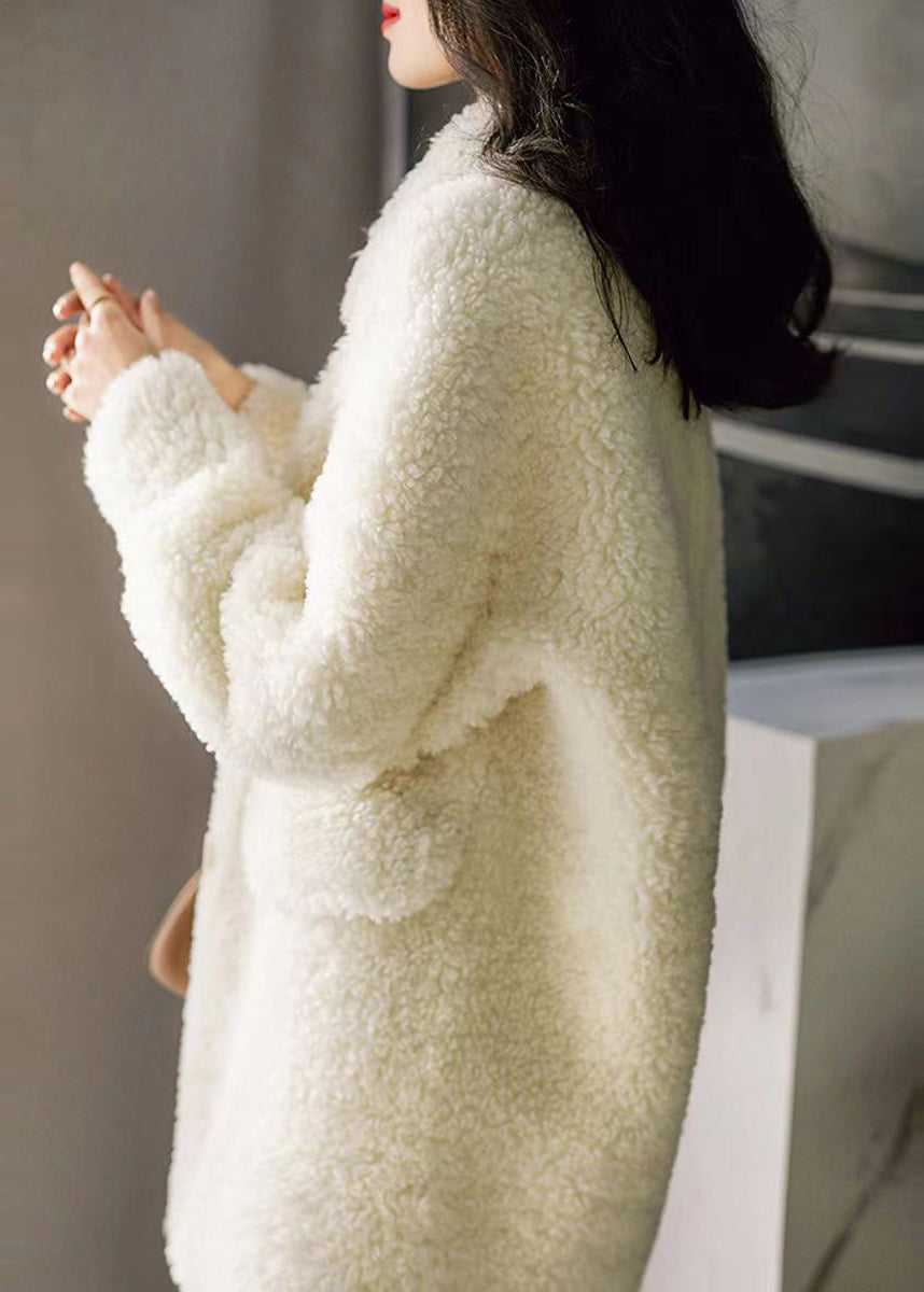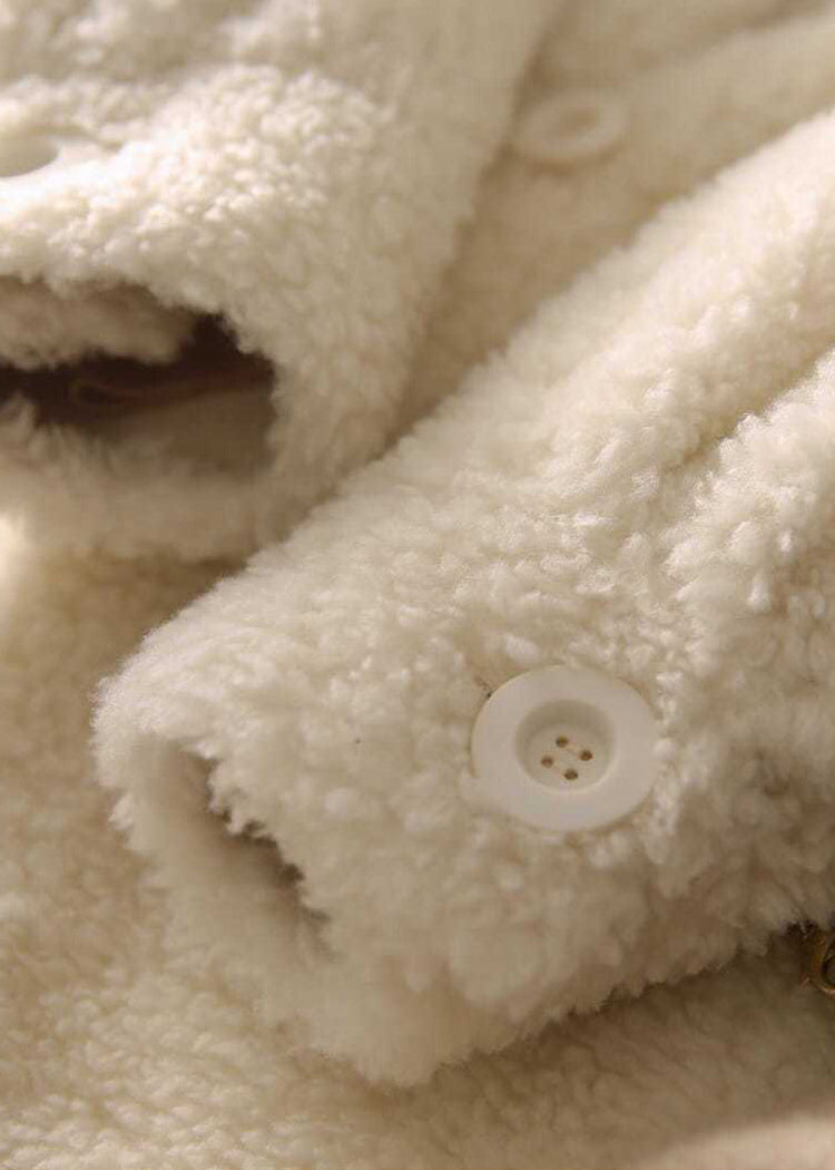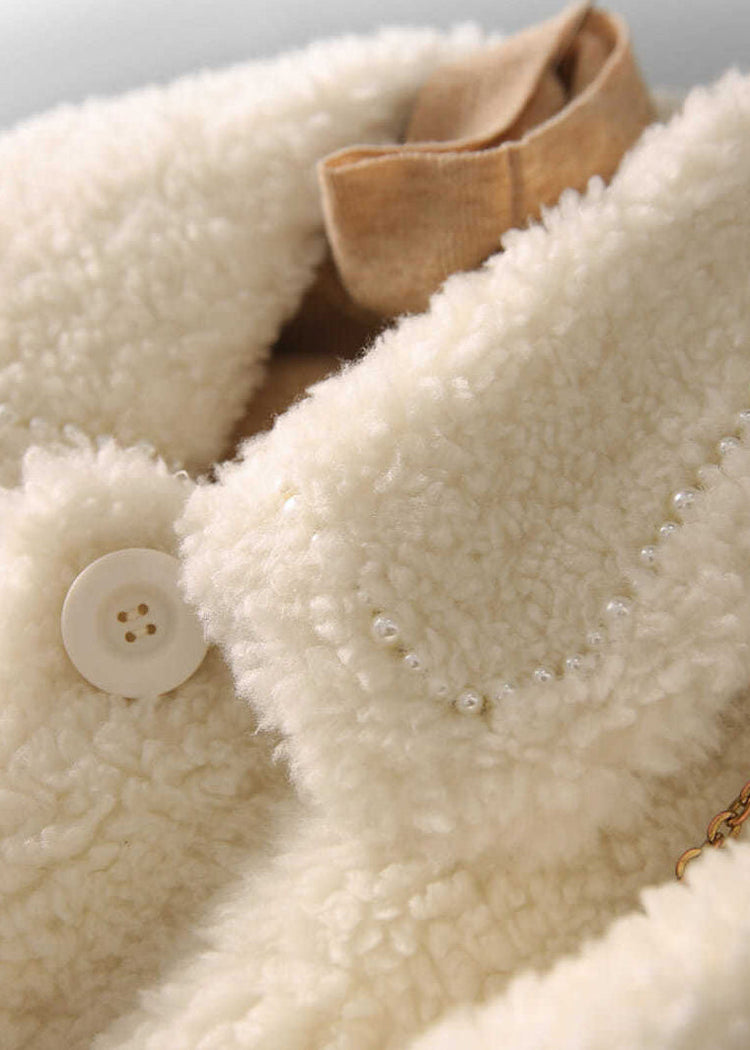 Chic Beige Peter Pan Collar Pockets Patchwork Wool Coats Winter