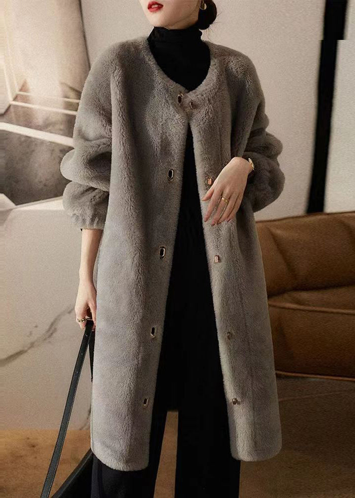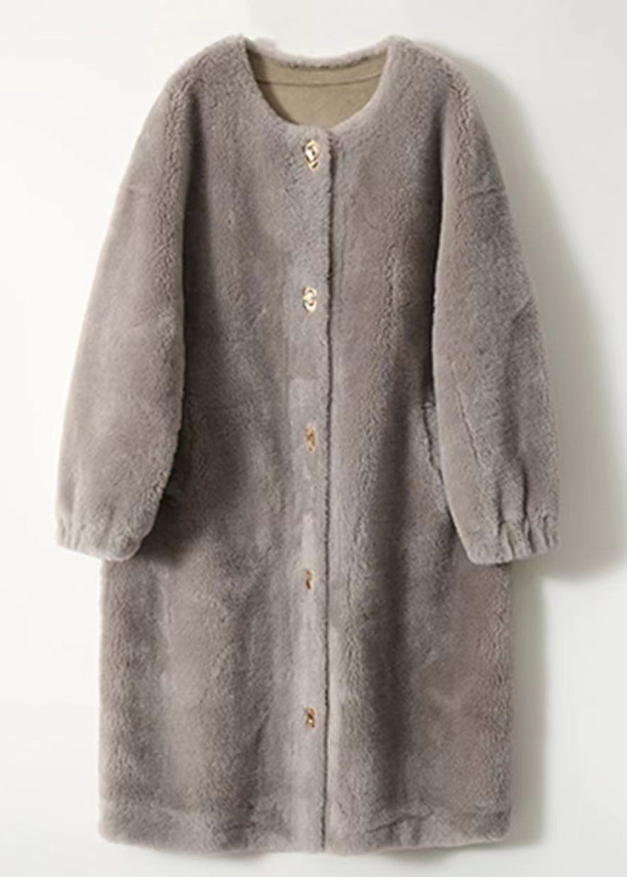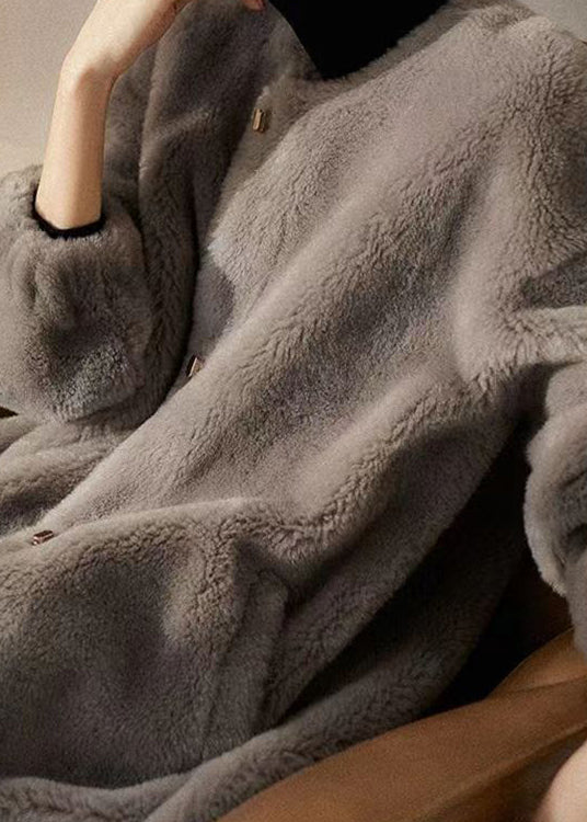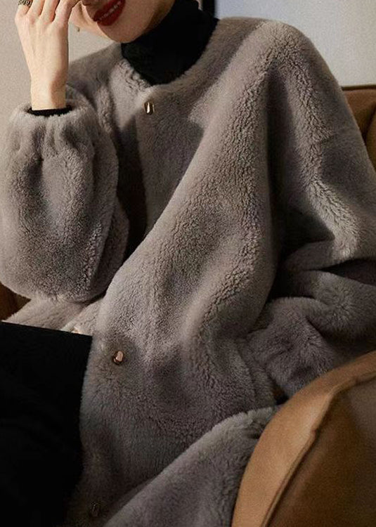 Loose Grey O Neck Pockets Patchwork Wool Coats Winter