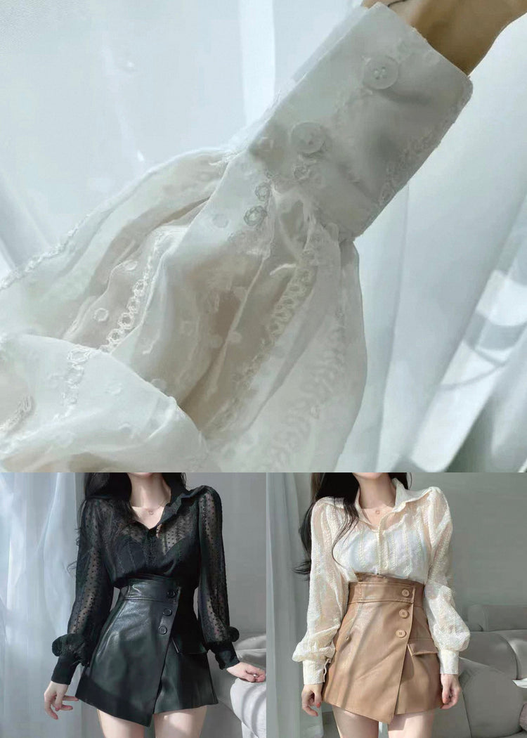 French Black Peter Pan Collar Lace Cotton Blouses Fall