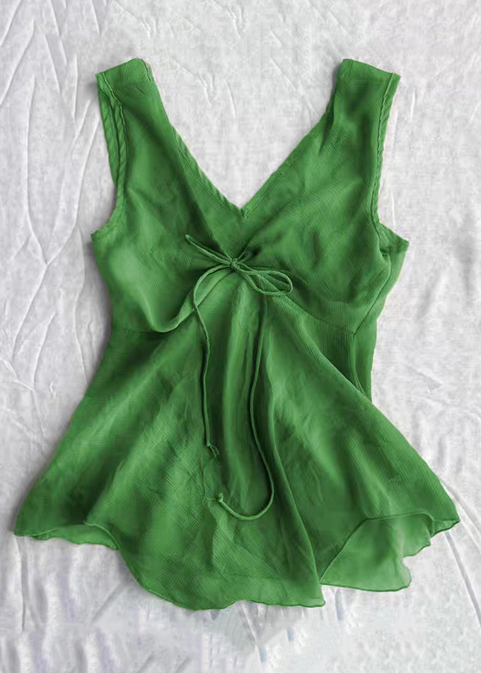 Vintage Brown V Neck Lace Up Solid Cotton Tank Sleeveless