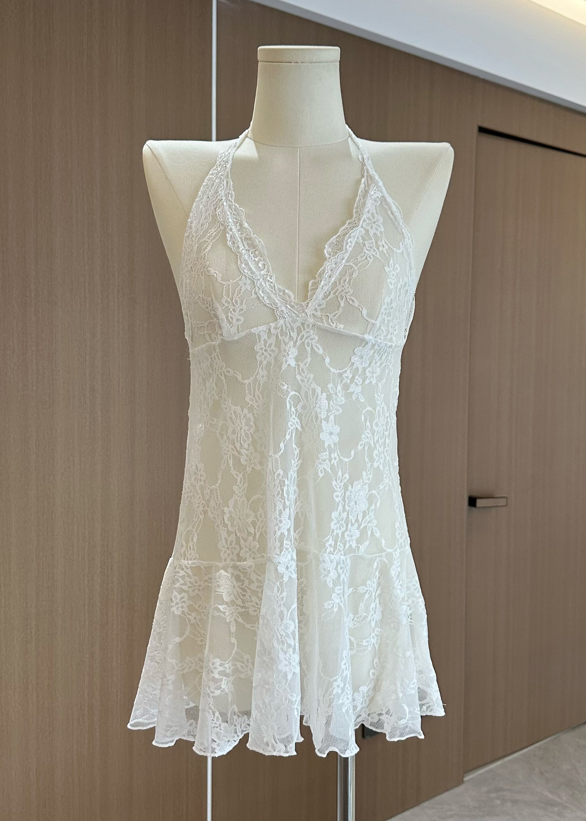 Loose White Ruffled Lace UpCotton Two Pieces Set Butterfly Sleeve