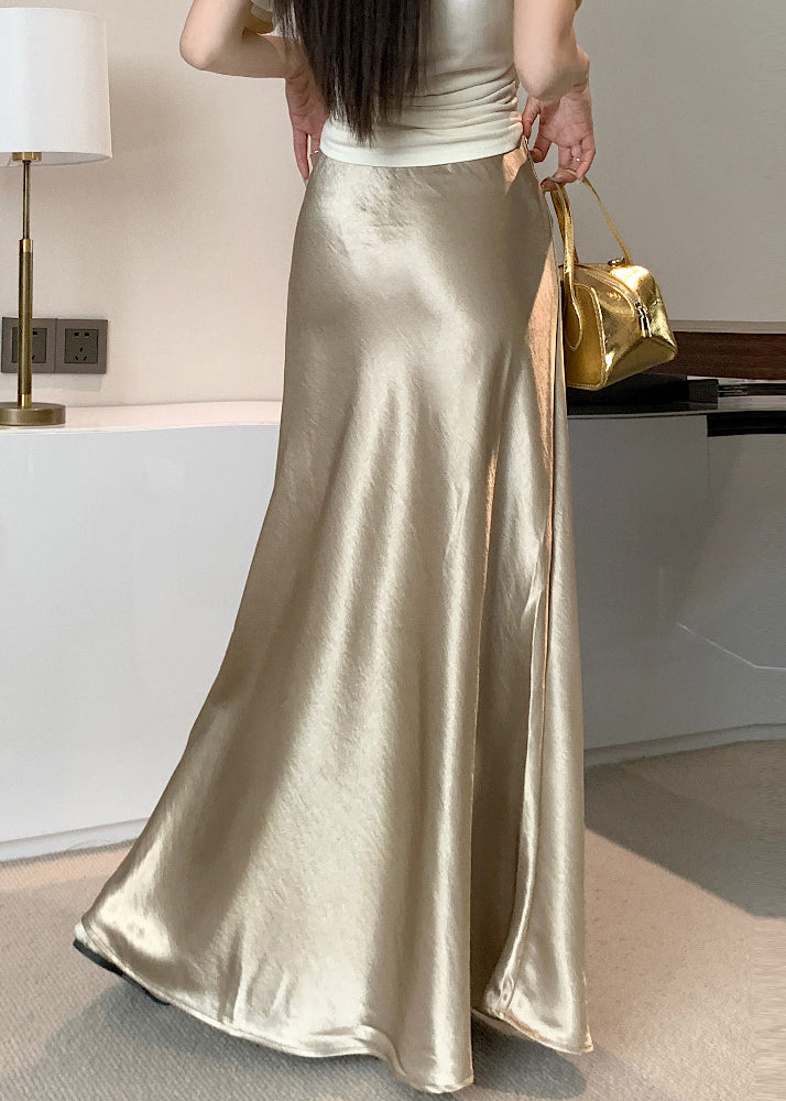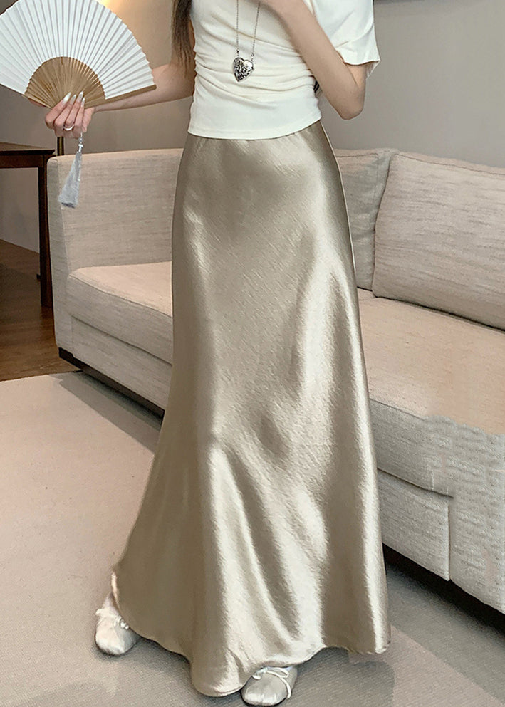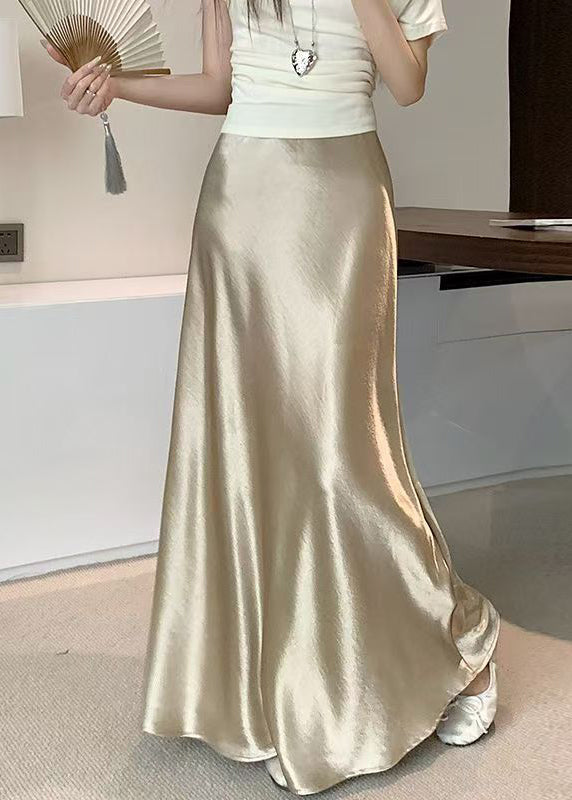 French Champagne Color Solid High Waist Silk Skirt Summer