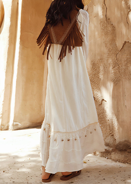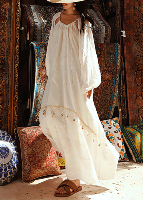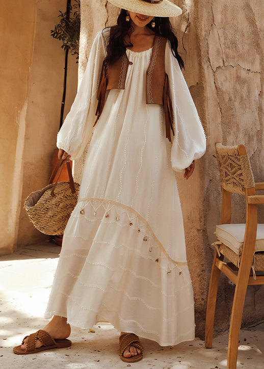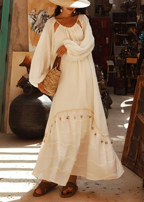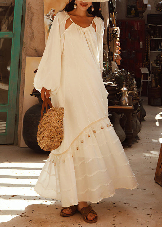 Handmade White Original Design Hollow Out Silk Cotton Maxi Dresses Fall