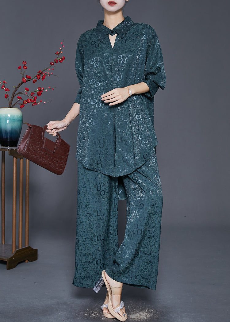 Beautiful Blackish Green Peter Pan Collar Jacquard Silk Two Pieces Set