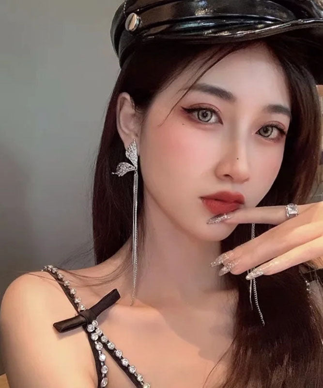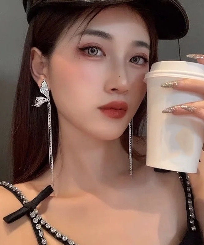 Beautiful Silk Copper Alloy Butterfly Tassel Drop Earrings