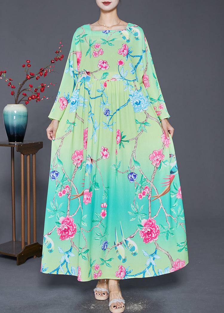 Bohemian Green Square Collar Print Silk Holiday Dresses Fall