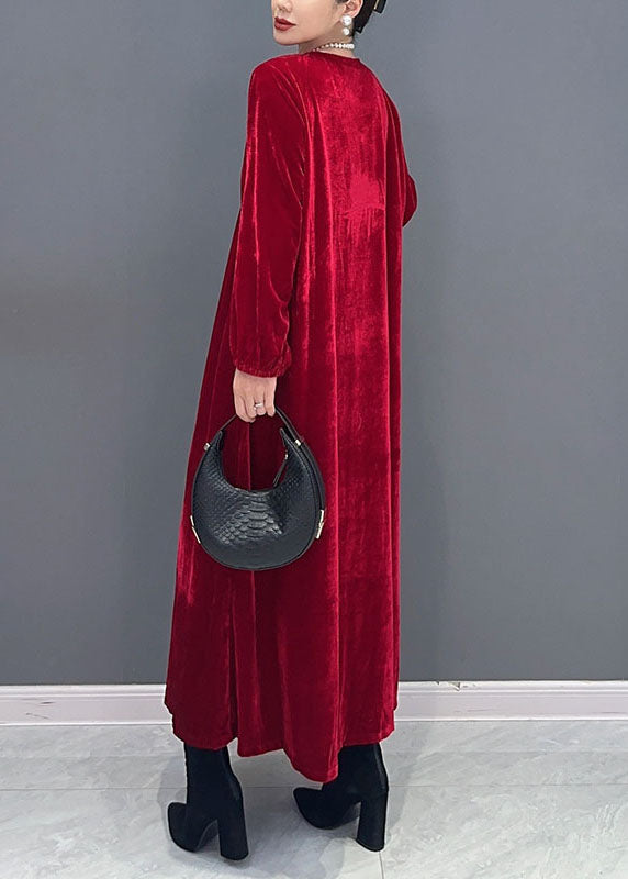 Boutique Red Patchwork Silk Velour Long Dresses Fall
