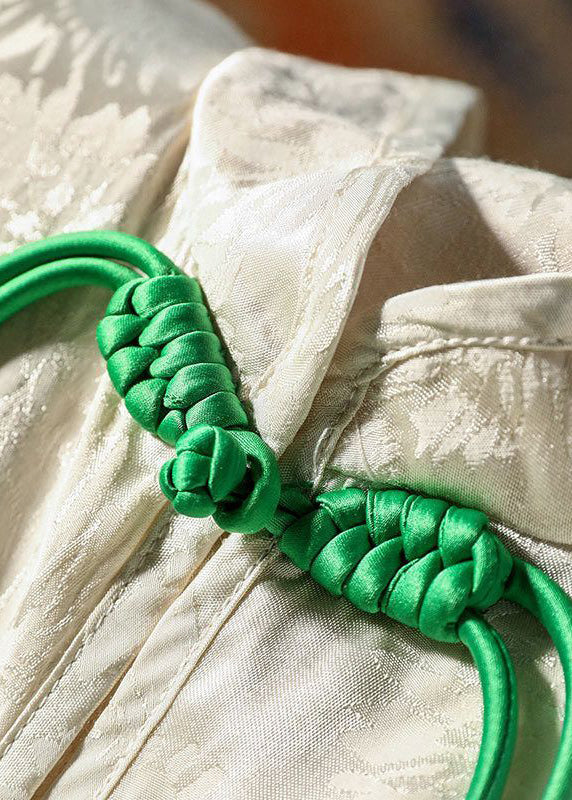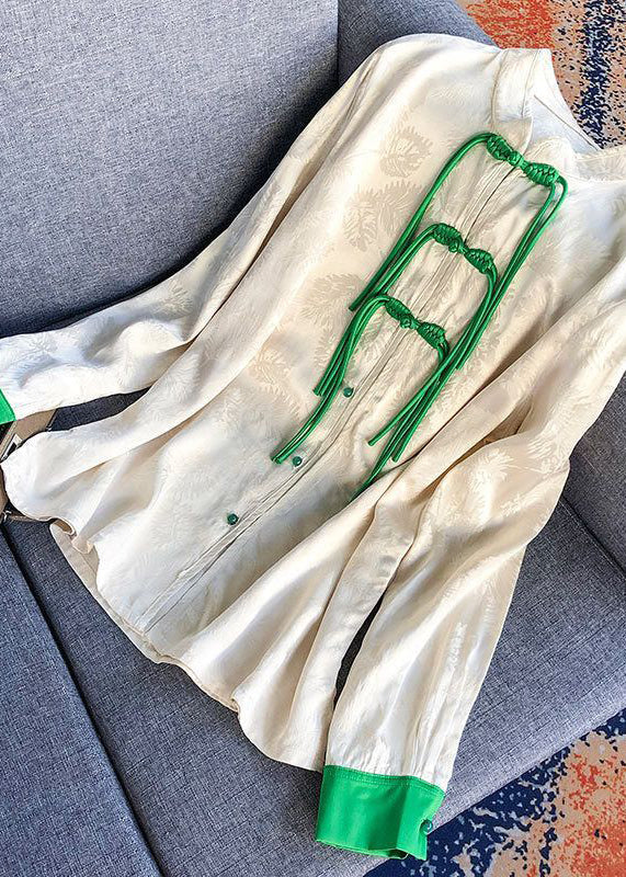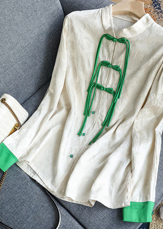 Chinese Style White Mandarin Collar Jacquard Tassel Silk blended Shirt Spring